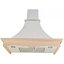 Особенно разнообразен ассортимент классических вытяжек с окантовкой из натурального дерева. Корпус таких моделей выполняется в спокойном белом или бежевом цвете, хорошо сочетающемся с оттенками натурального дерева — мореного дуба, бука, вишни или ореха. Нередко для окантовки используется окрашенное дерево в тон с цветом купола: особенно популярны оттенки ванили, бежевый и кремовый. Иногда дерево специально оставляют неокрашенным, чтобы пользователь мог подобрать оттенок самостоятельно.