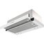Можно выделить два основных вида вытяжек с выдвижной панелью. В вытяжках, встраиваемых в подвесной шкаф, выдвижная панель необходима, так как размеры таких устройств определяются размерами самого шкафа. В закрытом состоянии глубина вытяжки может быть меньше глубины варочной поверхности. Телескопическая выдвижная панель, которая устанавливается преимущественно в устройствах, работающих в режиме отвода, гарантирует полный захват воздуха, загрязненного каплями жира, частицами сажи, испарениями. Панель можно выдвинуть как нажатием на кнопку, так и потянув за ее переднюю часть. В некоторых моделях при подобном выдвижении одновременно включается подсветка. Когда же панель убрана, вытяжка становится практически незаметной — такой вариант лучше всего подходит для небольшой кухни.