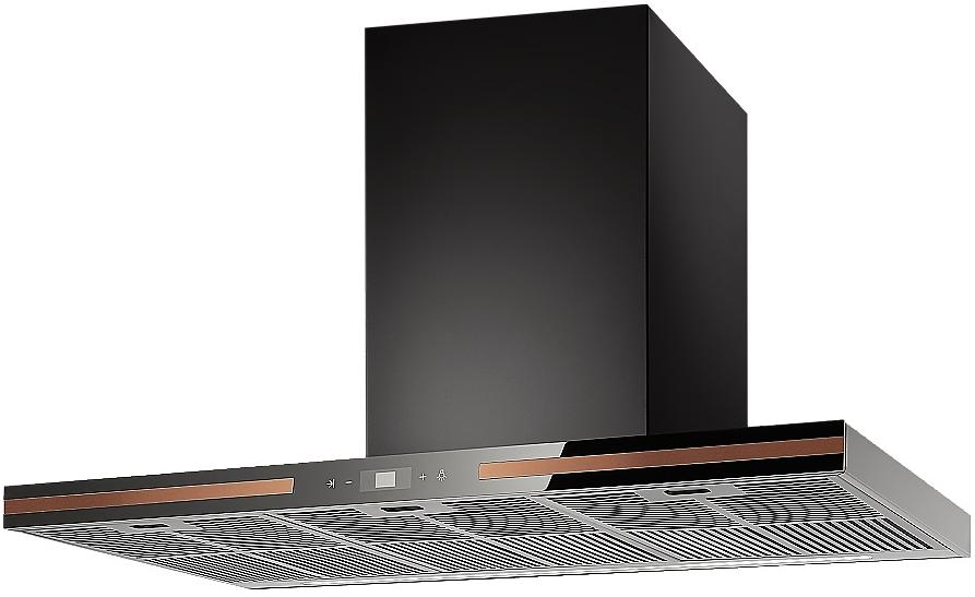 Часто кнопки или слайдеры находятся на фронтальной части устройства с правой стороны, чтобы их было удобнее переключать правой рукой и бывают скрыты выдвижным экраном. В больших купольных моделях кнопки специально выполняются так, чтобы бросаться в глаза: это заметная часть отделки устройства. Так, медные или латунные кнопки на светлом фасаде подчеркивают классический дизайн вытяжки и гармонируют с окантовкой из металла или натурального дерева. В таких моделях обычные кнопки или слайдеры могут заменяться более стильными поворотными переключателями.