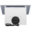 Площадь работы данной вытяжки достаточно приличная — она может эффективно очищать воздух на кухнях разного размера, до 30 кв.м. Ширина панели составляет 60 сантиметров, это стандартная величина, подходящая большей части варочных поверхностей и плит. В нижней части устройства установлены две светодиодные лампочки, создающие удобную подсветку для приготовления пищи. Во время работы панель поднимается вверх, открывая доступ к системе всасывания. В стандартном режиме отвода доступно три скорости. Кроме этого, модель может работать с не меньшей эффективностью и в закрытом состоянии. За счет наличия узких щелей работает функция периметрального всасывания воздуха. Она снижает нагрузку на двигатель, помогает экономить энергию, производит мало шума, а по эффективности не отличается от обычного режима.