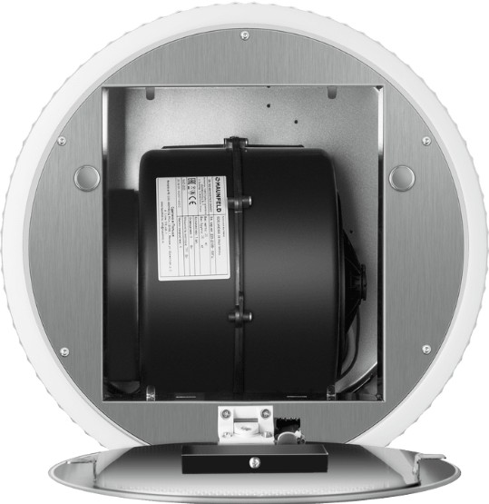 Вытяжка работает в режимах отвода и циркуляции, поэтому загрязнения удаляются из комнаты и перенаправляются в воздуховод, при этом можно очистить воздух и использовать повторно за счет возвращения его в помещение. Количество скоростей в этой модели: 4 шт. При этом максимальная производительность составляет 1270 куб.м./ч. Уровень шума при полной загруженности — 52 дБ.