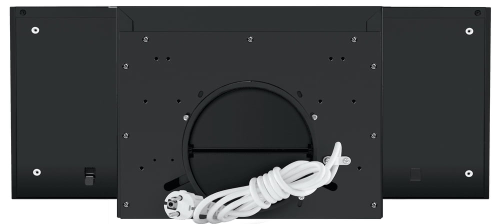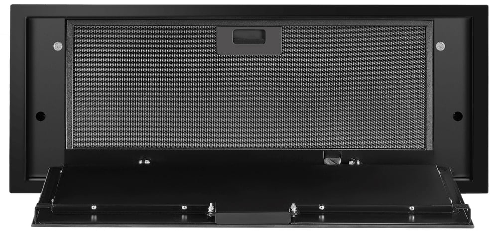 Воздух всасывается по периметру вытяжки через узкие щели. Он собирается в потоки, которые направляются прямо к фильтрам внутри, не рассеивается на кухне. Благодаря этой технологией вытяжку можно сделать компактнее и энергоэффективнее.