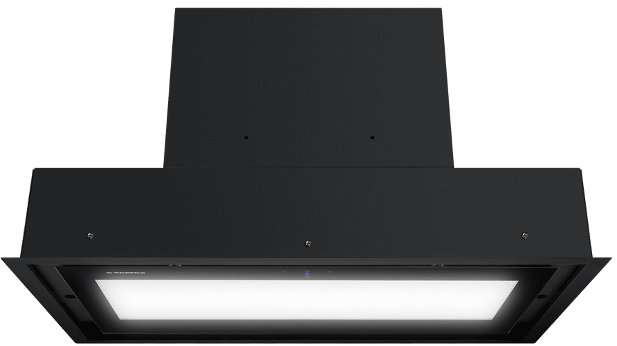Вытяжка, встраиваемая в потолок, часто устанавливается над кухонным островом в просторной кухне и отличается достаточно высокой мощностью: она может работать как в режиме рециркуляции, так и в режиме отвода, так как воздуховод также скрыт в потолке. Вытяжки могут монтироваться в подвесной потолок либо устанавливаться в специальные многоярусные конструкции из гипсокартона непосредственно во время ремонта кухни. Для управления ими используется пульт ДУ.