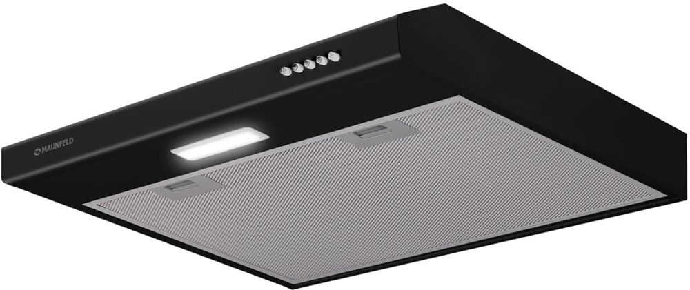 Крепление вытяжки к стене — стандартное для многих моделей, ими удобно управлять, так как кнопки находятся на расстоянии вытянутой руки. Обратите внимание на цветовые сочетания модели Maunfeld Tail Push 60 Black, чтобы органично вписать ее в свою квартиру. Оттенок корпуса: черный. Благодаря лампочкам, которые расположены на нем, можно освещать плиту и столешницу рядом, чтобы готовить было еще проще и приятнее.