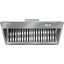Вытяжка предназначена для работы с комбинированной плитой из серии Range Cooker. Модуль устанавливается над варочной поверхностью — на расстоянии 65 см, встраивается в шкаф. Благодаря четырем жироулавливающим фильтрам из нержавеющей стали и вентилятору двойного действия загрязнения из воздуха быстро и эффективно засасываются внутрь и оседают там. Антивозвратный клапан предотвращает обратное попадание воздуха в комнату. Фильтры и специальный поддон для жира можно мыть в посудомоечной машине, что облегчает уход за прибором. Угольный фильтр необходимо приобретать отдельно, чтобы активировать режим рециркуляции.