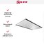 Стандартная ширина кухонных вытяжек может составлять 30 см, 45 см, 50 см, 60 см, 80 см, 90 см, 100 см и 120 см в соответствии со стандартными габаритами варочных панелей. Самыми востребованными являются устройства на 60 см, которые устанавливаются над стандартной поверхностью с четырьмя зонами нагрева.