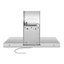 Вытяжка может устанавливаться над варочной панелью с пятью или шестью конфорками, на расстоянии не менее 50 см. Корпус устройства выполнен в цвете нержавеющей стали. Максимальная производительность составляет 713 м3/ч — такая модель способна быстро очистить воздух в помещении большой площади. Устройство предназначается для работы в двух режимах: отвода воздуха с присоединением к системе вентиляции, и рециркуляции с очисткой воздуха в помещении при помощи системы фильтров. Три алюминиевых жироулавливающих фильтра входят в комплект, их можно без труда снимать для периодической очистки, о необходимости которой сообщают индикаторы загрязнения. Угольный фильтр приобретается отдельно. Панель управления оснащена кнопками переключения скоростей. Для выбора интенсивного режима с очисткой особенно загрязненного воздуха предназначено отдельная кнопка, время работы в этом режиме составляет 5 минут, по истечении которых она переключается на скорость 3. Таймер предусматривает автоматическое отключение вытяжки через 15 минут. Класс энергопотребления A свидетельствует об экономичной работе. Для освещения рабочей зоны используются 2 LED-лампы мощностью 1 Вт.