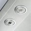 Необычная особенность вытяжки Viking — тепловая лампа, которая позволяет сохранить температуру готового блюда и дождаться гостей перед подачей его на стол. Две светодиодные лампы хорошо освещают рабочую поверхность. Управление механическое, осуществляется с двумя поворотными регуляторами с подсветкой — один для освещения, другой для выбора скорости. Когда вытяжка выключена, они утапливаются в корпус.