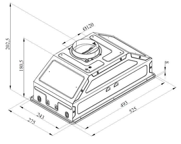 У многих встраиваемых моделей глубина может регулироваться, а рабочая всасывающая поверхность — увеличиваться благодаря выдвижному козырьку, но габариты корпуса такой вытяжки должны соответствовать размерам подвесного шкафа. Выбирать основные размеры вытяжки с соблюдением всех требований эффективности и безопасности работы следует также не в ущерб общему дизайну помещения.