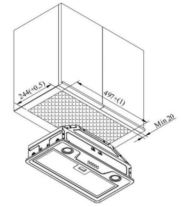 - Габариты ниши для встраивания (ВхШхГ): 49.7x24.4 см