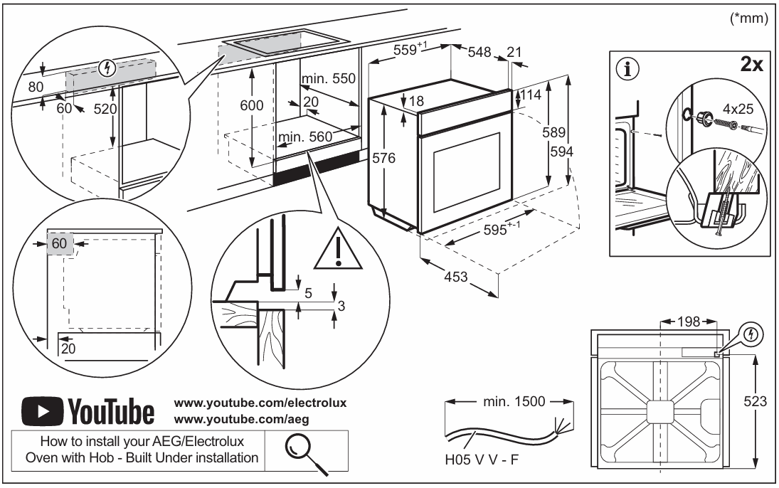 Electrolux LOD6F77WZ - схема встраивания к духовому шкафу на разных языках на Hausdorf