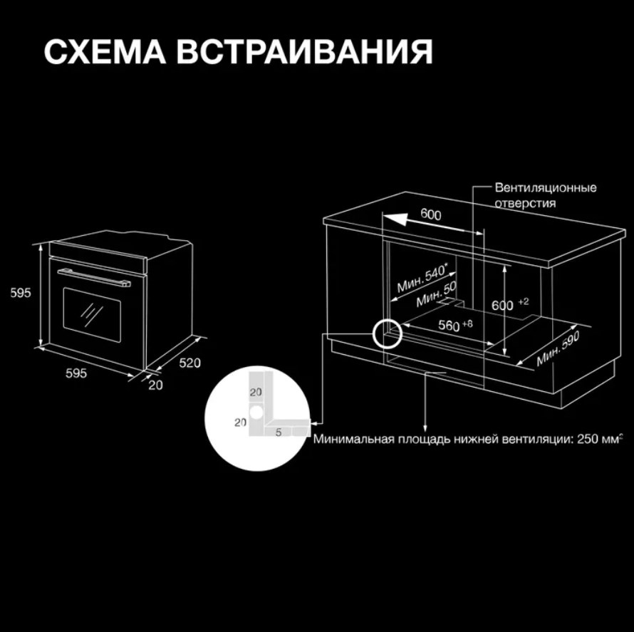 Hyundai HEO 6635 BG - схема встраивания к духовому шкафу на разных языках на Hausdorf