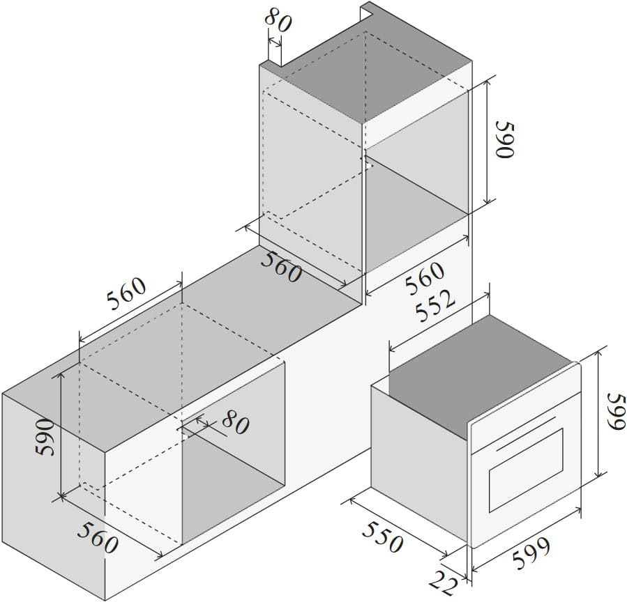 Ilve OV601GL3/BK - схема встраивания к духовому шкафу на разных языках на Hausdorf