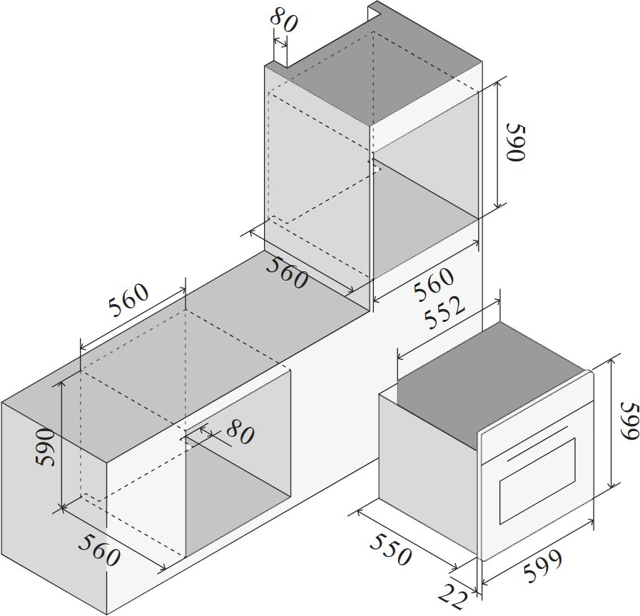 Ilve OV60STCT3/BK - схема встраивания к духовому шкафу на разных языках на Hausdorf