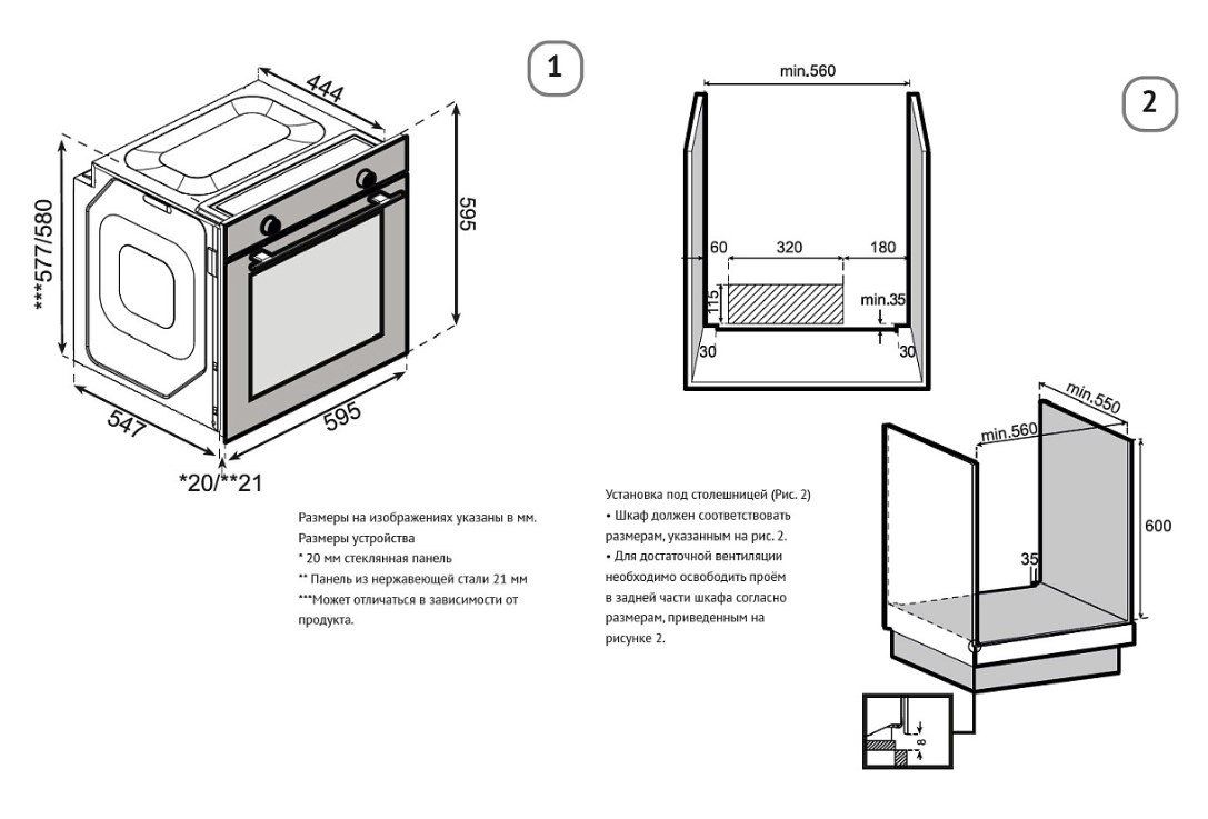 Korting OKB 3810 FGGr - схема с размерами версия 2 к духовому шкафу на разных языках на Hausdorf