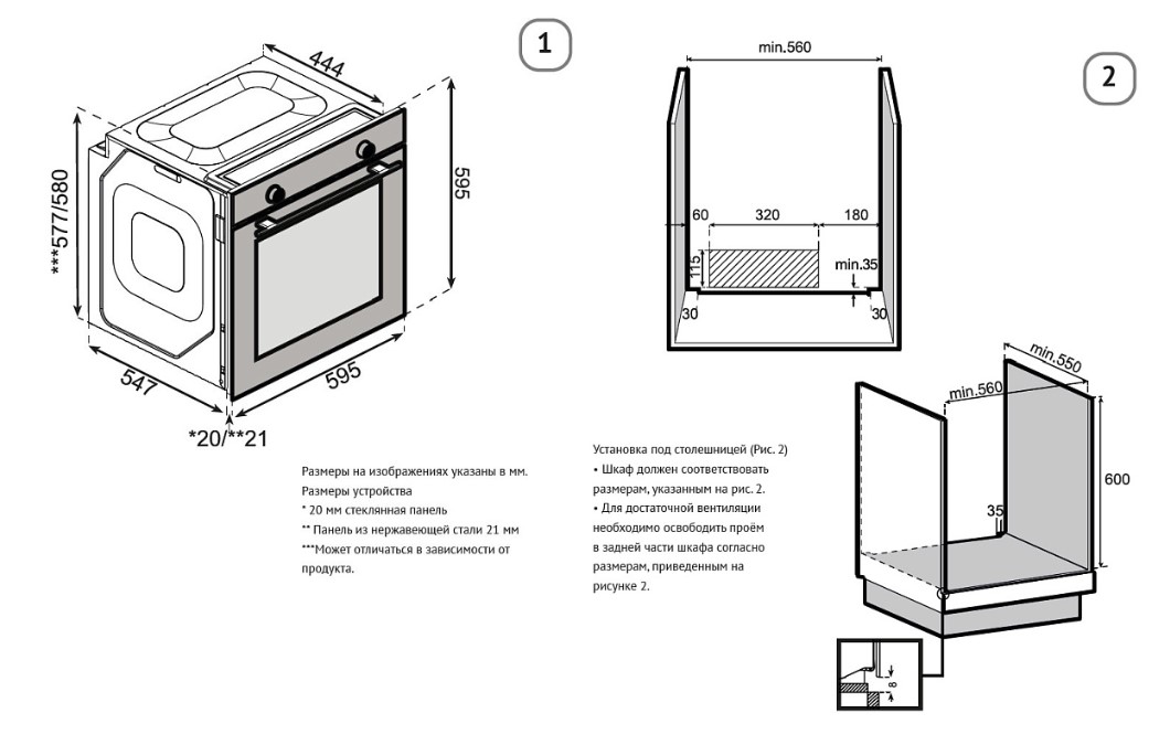 Korting OKB 61061 SQGN - схема с размерами версия 2 к духовому шкафу на разных языках на Hausdorf