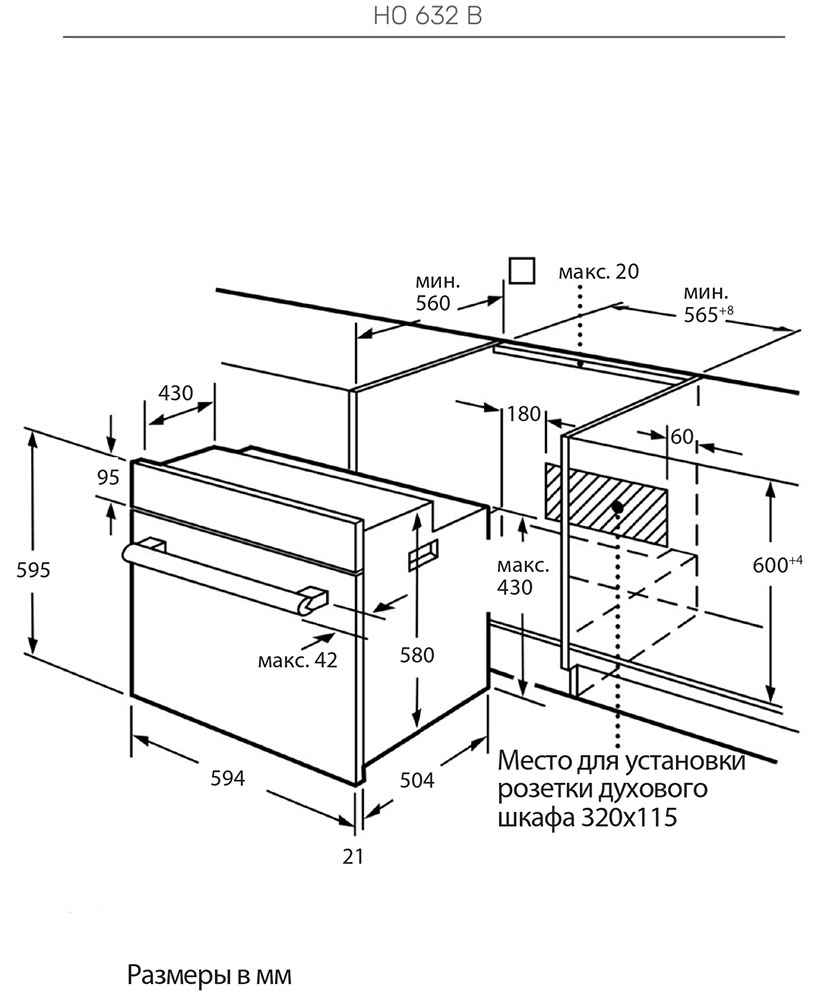 Kuppersberg HO 632 B - схема встраивания к духовому шкафу на разных языках на Hausdorf
