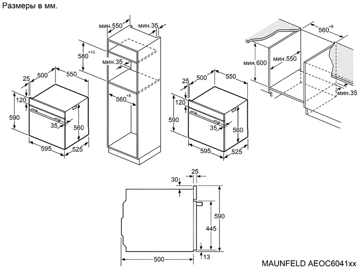 Maunfeld AEOC6041S - схема с размерами версия 2 к духовому шкафу на разных языках на Hausdorf