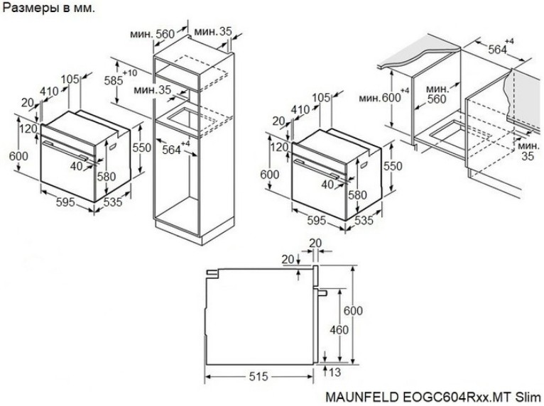 Maunfeld EOGC604RIB.MT Slim - схема с размерами к духовому шкафу на разных языках на Hausdorf