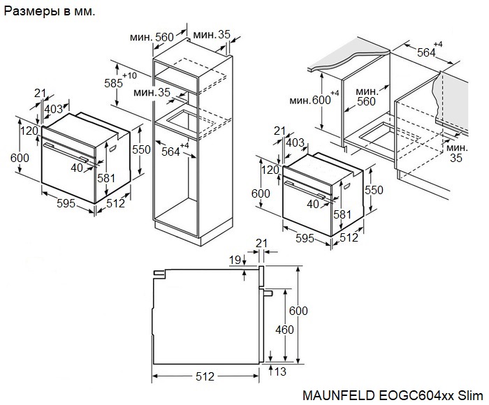 Maunfeld EOGC604S Slim - схема с размерами к духовому шкафу на разных языках на Hausdorf