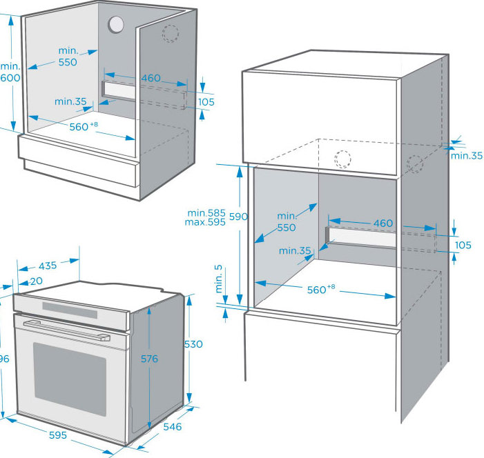 Maunfeld MEOR7217SMB - схема с размерами к духовому шкафу на разных языках на Hausdorf