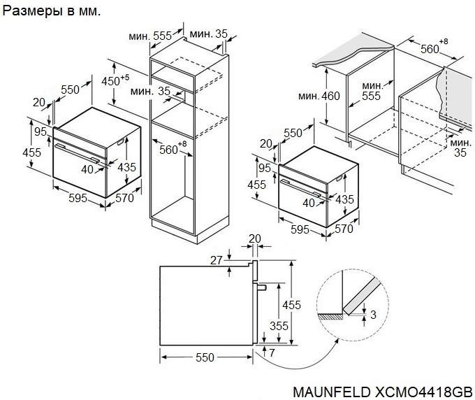 Maunfeld XCMO4418GB Glossy - схема с размерами версия 2 к духовому шкафу на разных языках на Hausdorf