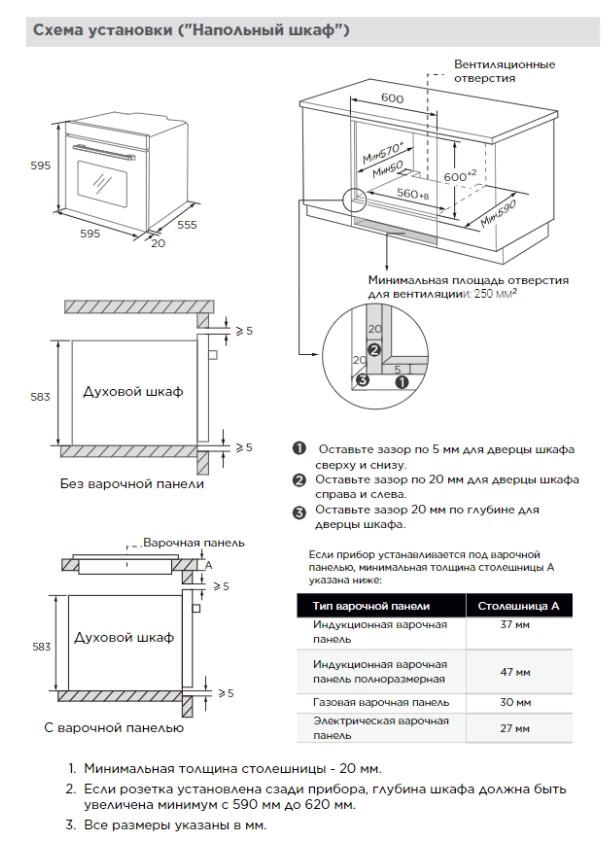Midea MO69103X - схема с размерами к духовому шкафу на разных языках на Hausdorf