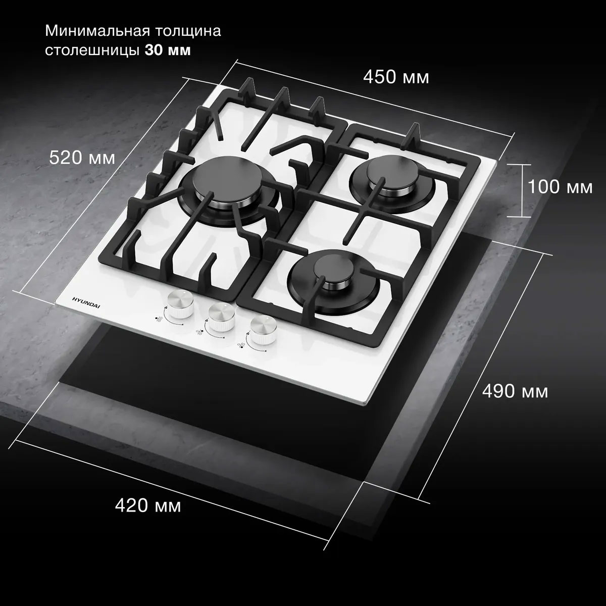 Газовая варочная панель Hyundai HHG 4333 WG