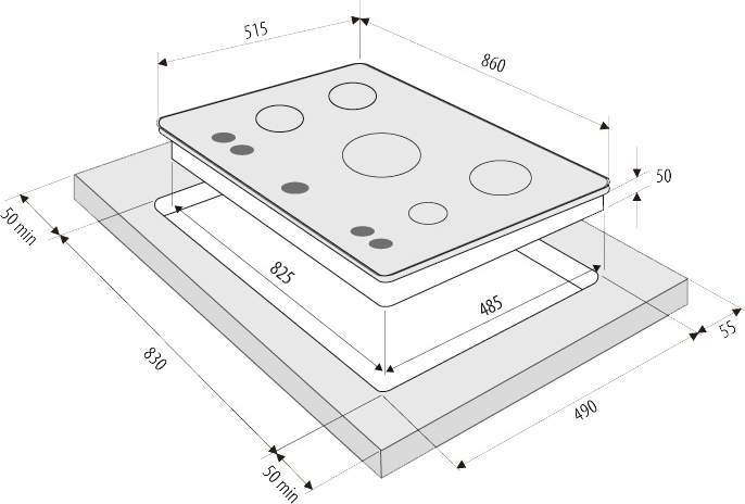 Газовая варочная панель KRONA NOVANTA 90 AN с подставкой WOK