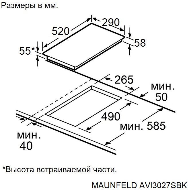 Maunfeld AVI3027SBK - схема с размерами версия 2 к варочной панели на разных языках на Hausdorf