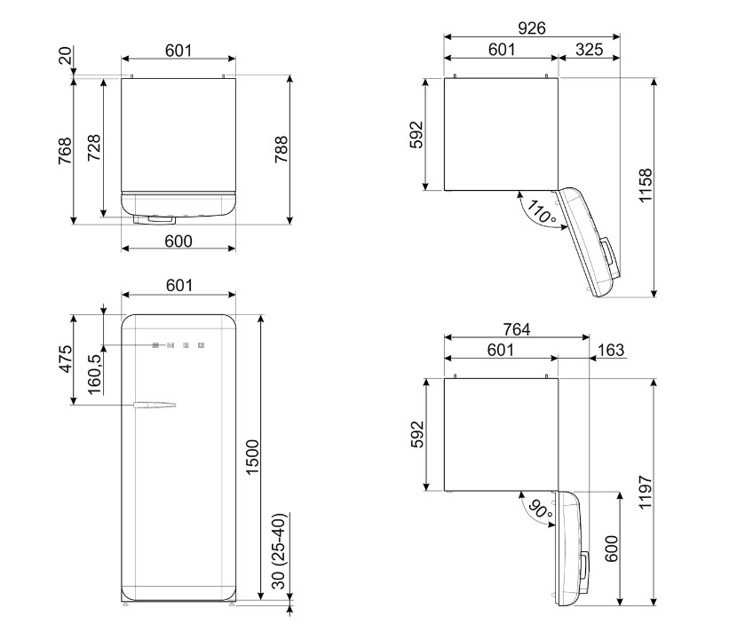 Smeg FAB28RRD6 - схема с размерами версия 2 к холодильнику на разных языках на Hausdorf