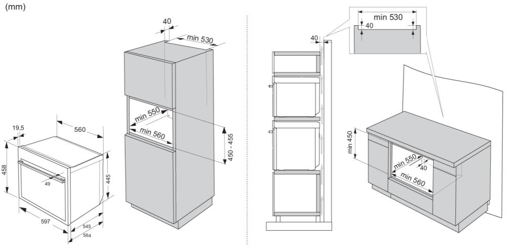 Asko OCM64SSH - схема с размерами к духовому шкафу на разных языках на Hausdorf