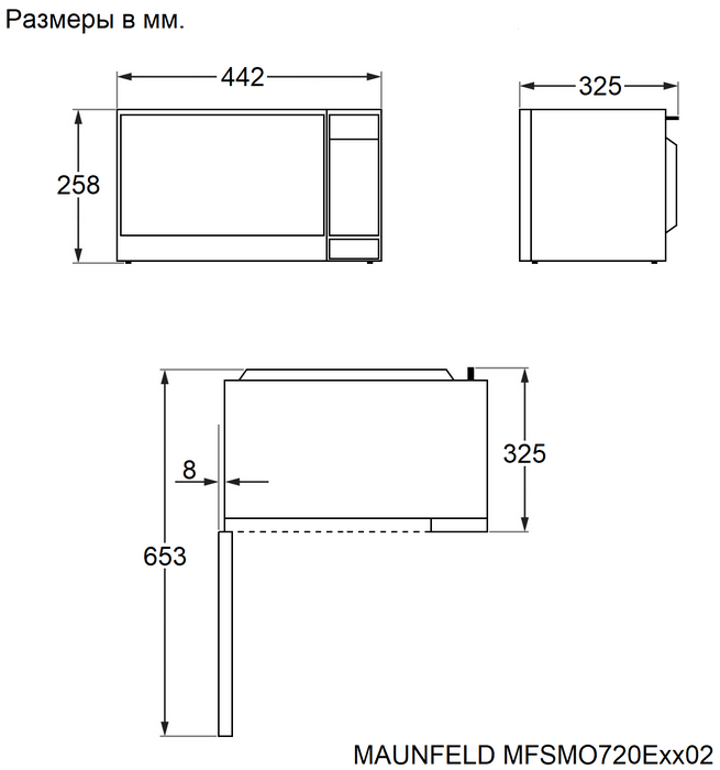 Maunfeld MFSMO720EW02 - схема с размерами версия 2 к микроволновой печи на разных языках на Hausdorf