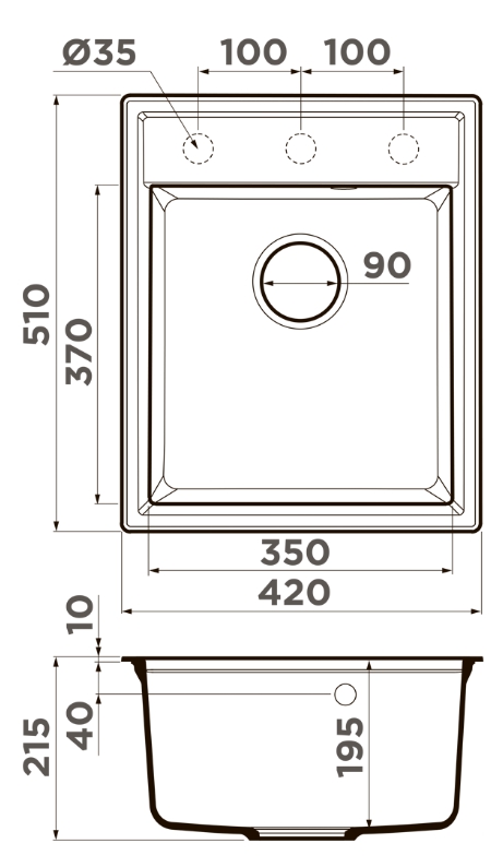 Omoikiri Daisen 42-WH - схема с размерами к мойке на разных языках на Hausdorf