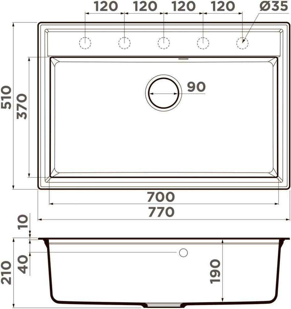 Сохранить файл: Схема с размерами к Omoikiri Daisen-77-WH.JPG, 82.32 Кб