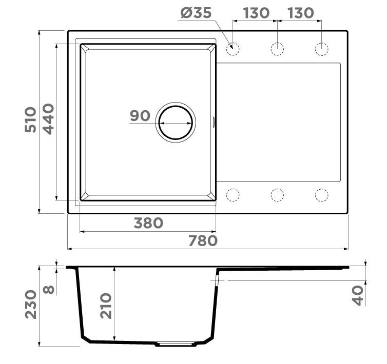 Сохранить файл: Схема с размерами к Omoikiri DAISEN 78T BE.JPG, 33.36 Кб