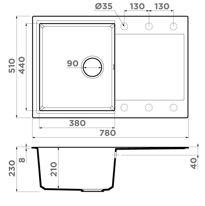 Сохранить файл: Схема с размерами к Omoikiri DAISEN 78T WH.JPG, 32.68 Кб