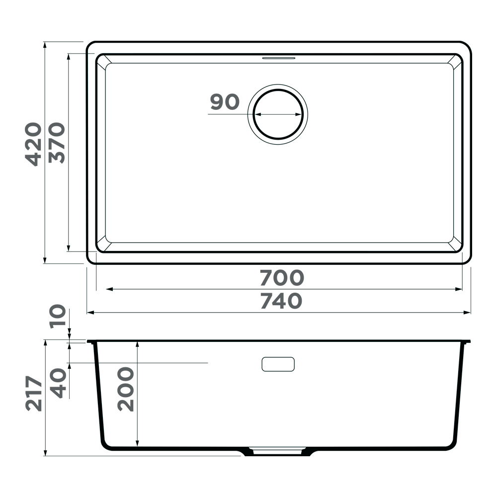 Omoikiri Kata 74-U-GR - схема с размерами версия 2 к мойке на разных языках на Hausdorf