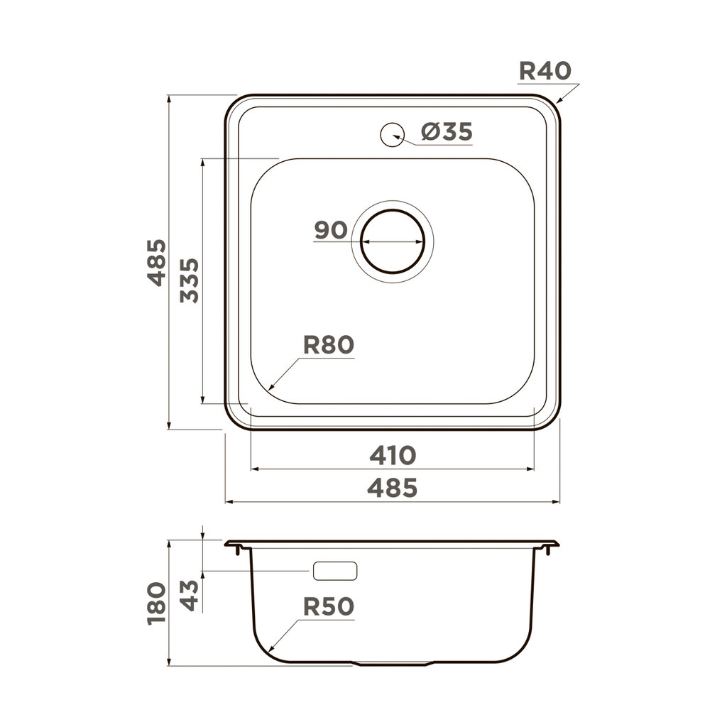 Omoikiri NOTORO 48 IN - схема с размерами версия 2 к мойке на разных языках на Hausdorf