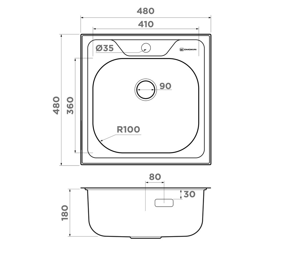 Omoikiri SARU 48 IN - схема с размерами к мойке на разных языках на Hausdorf
