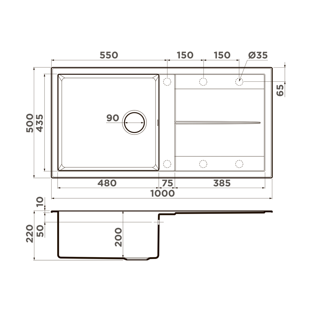 Сохранить файл: Схема с размерами к Omoikiri Sumi 100-GR.PNG, 116.28 Кб