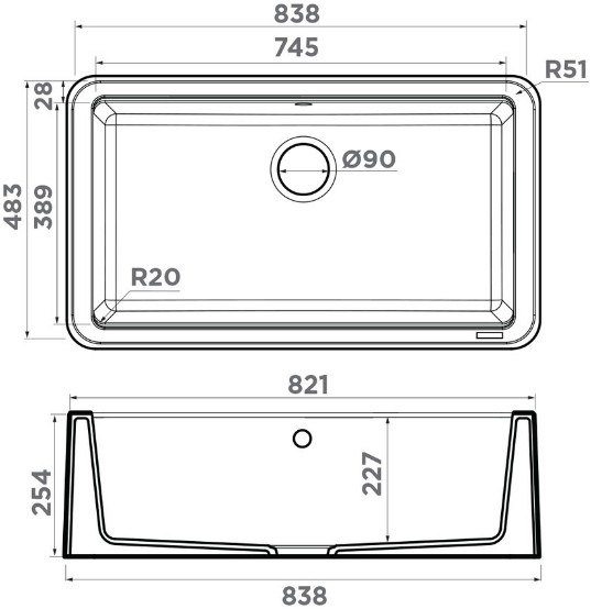 Сохранить файл: Схема с размерами к Omoikiri TARENTO 83 GB.JPG, 46.32 Кб