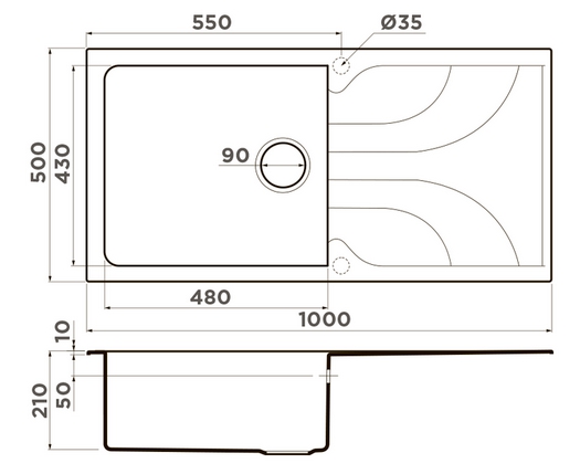 Сохранить файл: Схема с размерами к Omoikiri YASUGATA 100 BE.JPG, 60.75 Кб
