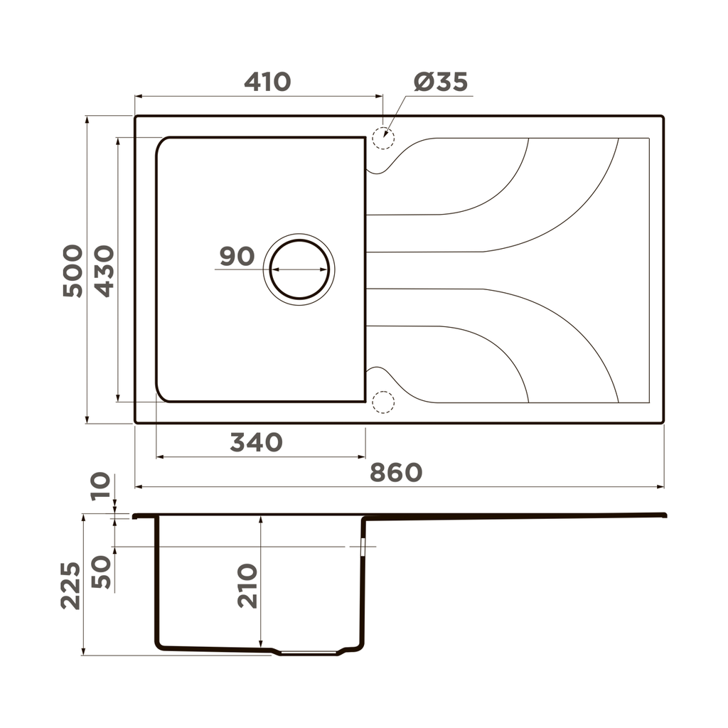 Сохранить файл: Схема с размерами к Omoikiri YASUGATA 86-GR.PNG, 117.38 Кб