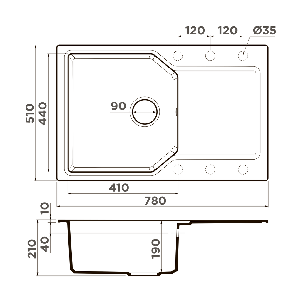 Сохранить файл: Схема с размерами к Omoikiri Yonaka-78-SA.PNG, 138.2 Кб