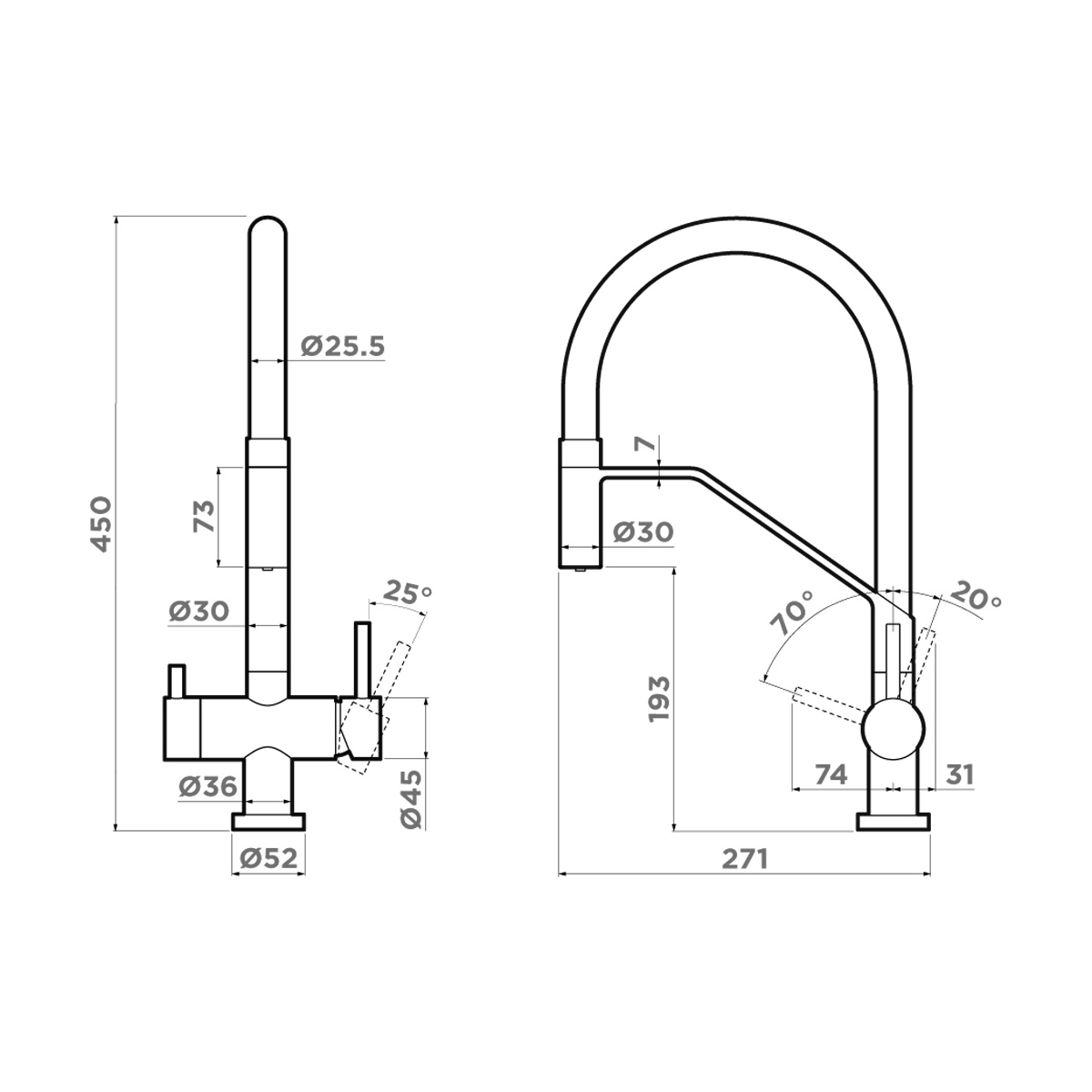 Omoikiri Akeno gm - схема с размерами к смесителю на разных языках на Hausdorf