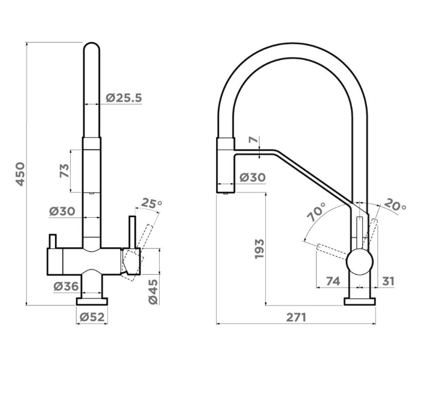 Omoikiri Akeno lg - схема с размерами к смесителю на разных языках на Hausdorf