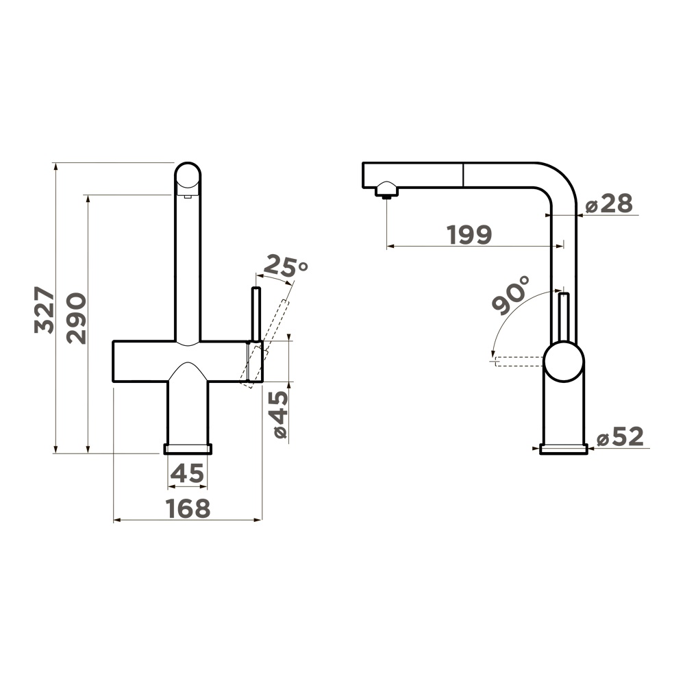 Omoikiri KARATSU-S GM - схема с размерами версия 2 к смесителю на разных языках на Hausdorf