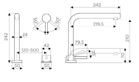 Omoikiri NARA-LG - схема с размерами к смесителю на разных языках на Hausdorf