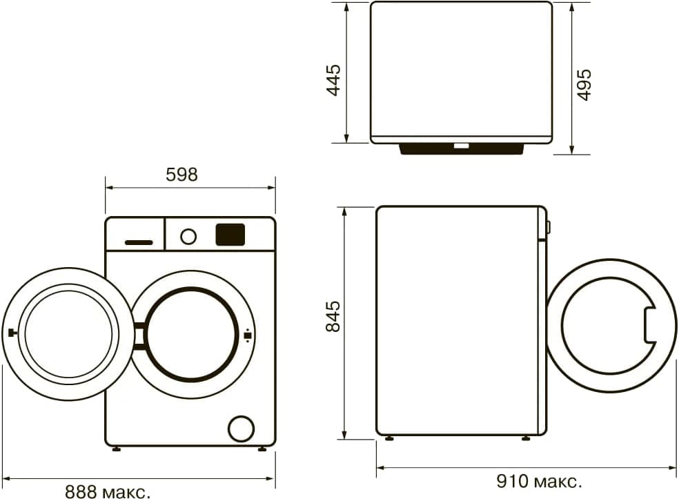 KRONA RHENE WHITE 1000 6K WM - габаритный чертеж к стиральной машине на разных языках на Hausdorf